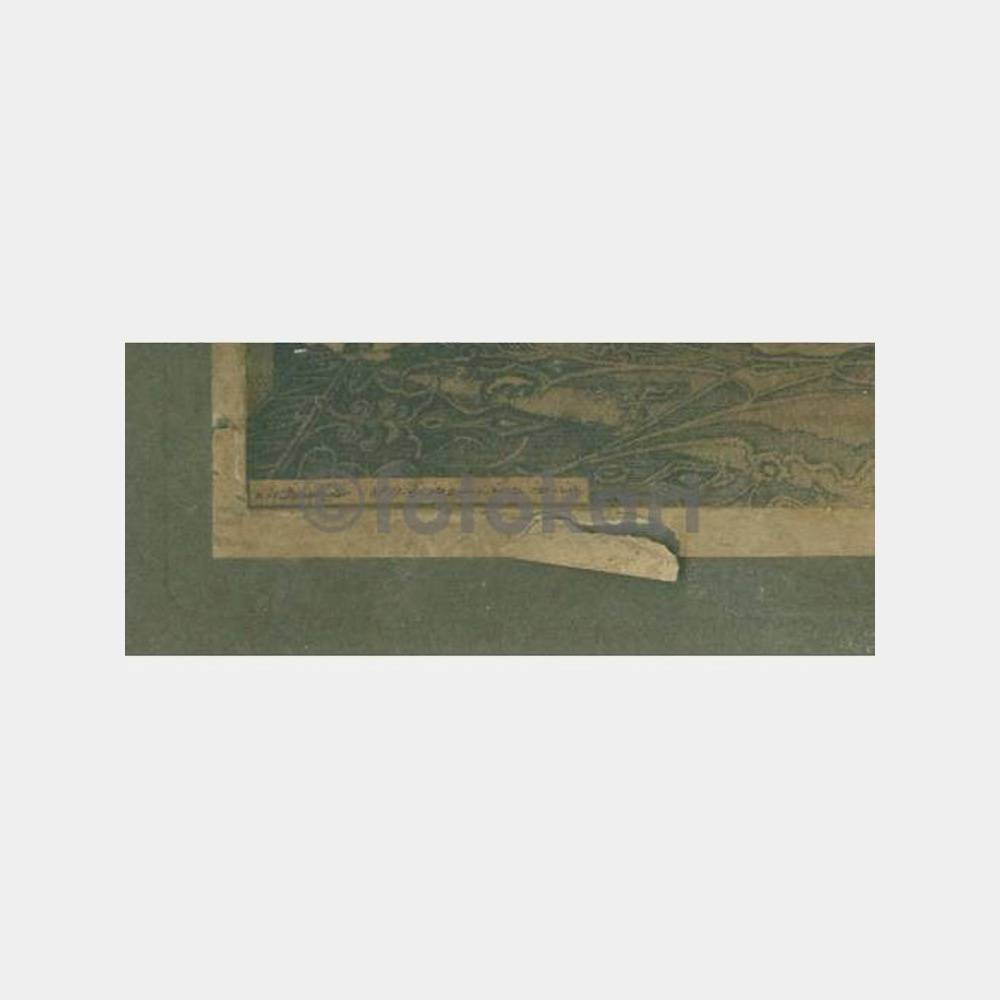 Bir karton üzerine 25 x 20 cm ebadında, resim kısmı 16 x 12 cm dir. Arkasında yazı var ancak anlaşılmadı. Resim çerçevesinden sökülmüş durumda.