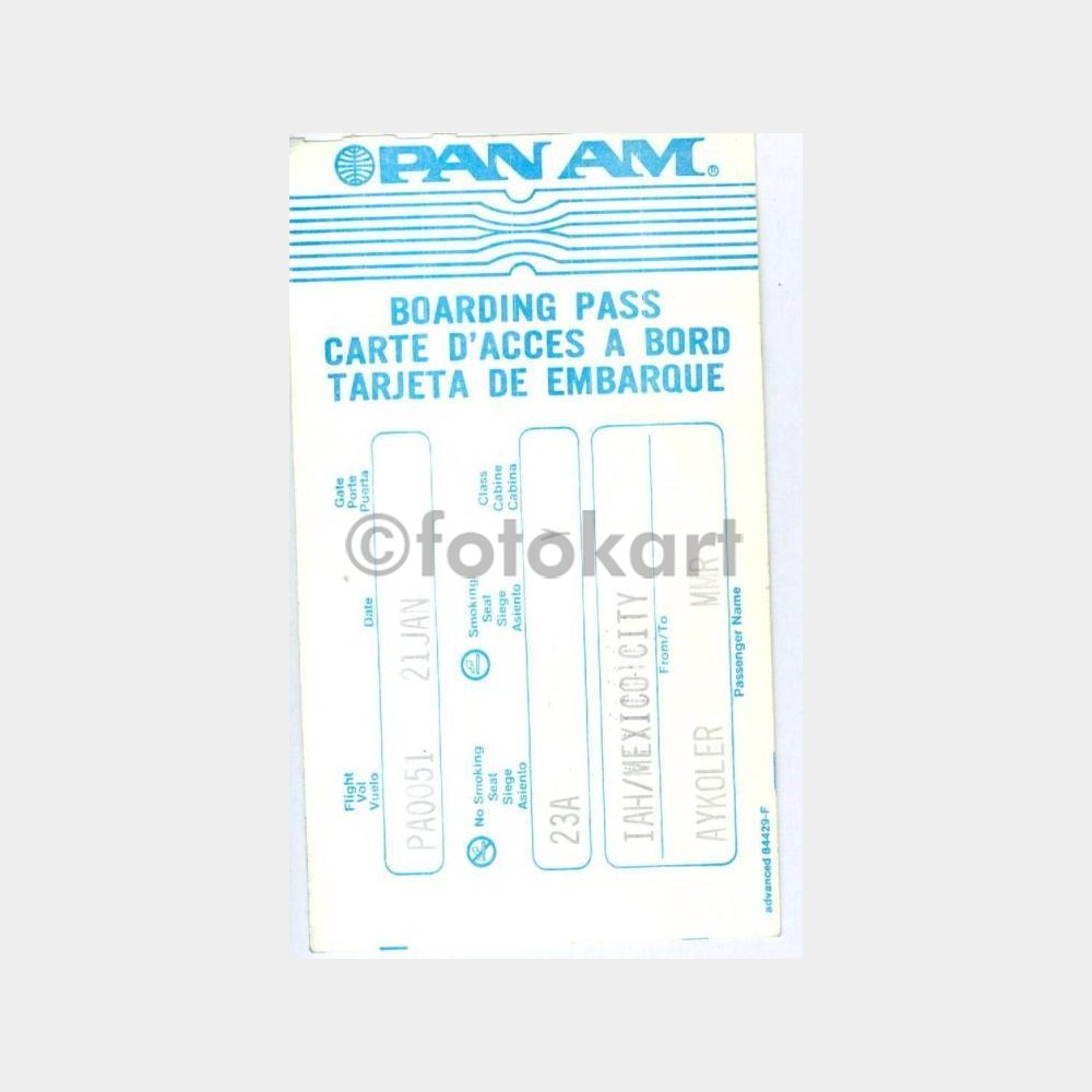 Panam Havayolları Uçak Biniş Kartı
