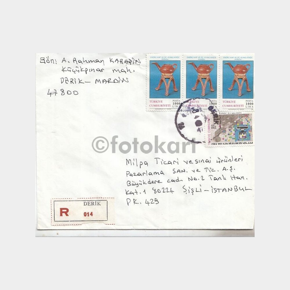 Posta Damgalı Zarf, 1991 Derik