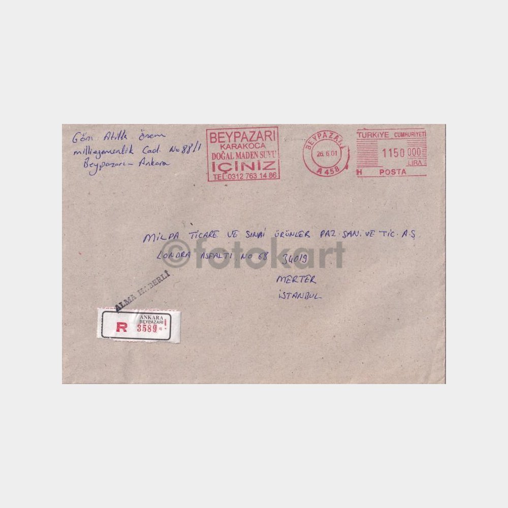 Postadan Geçmiş Taahhütlü Zarf, Ankara-Beypazarı