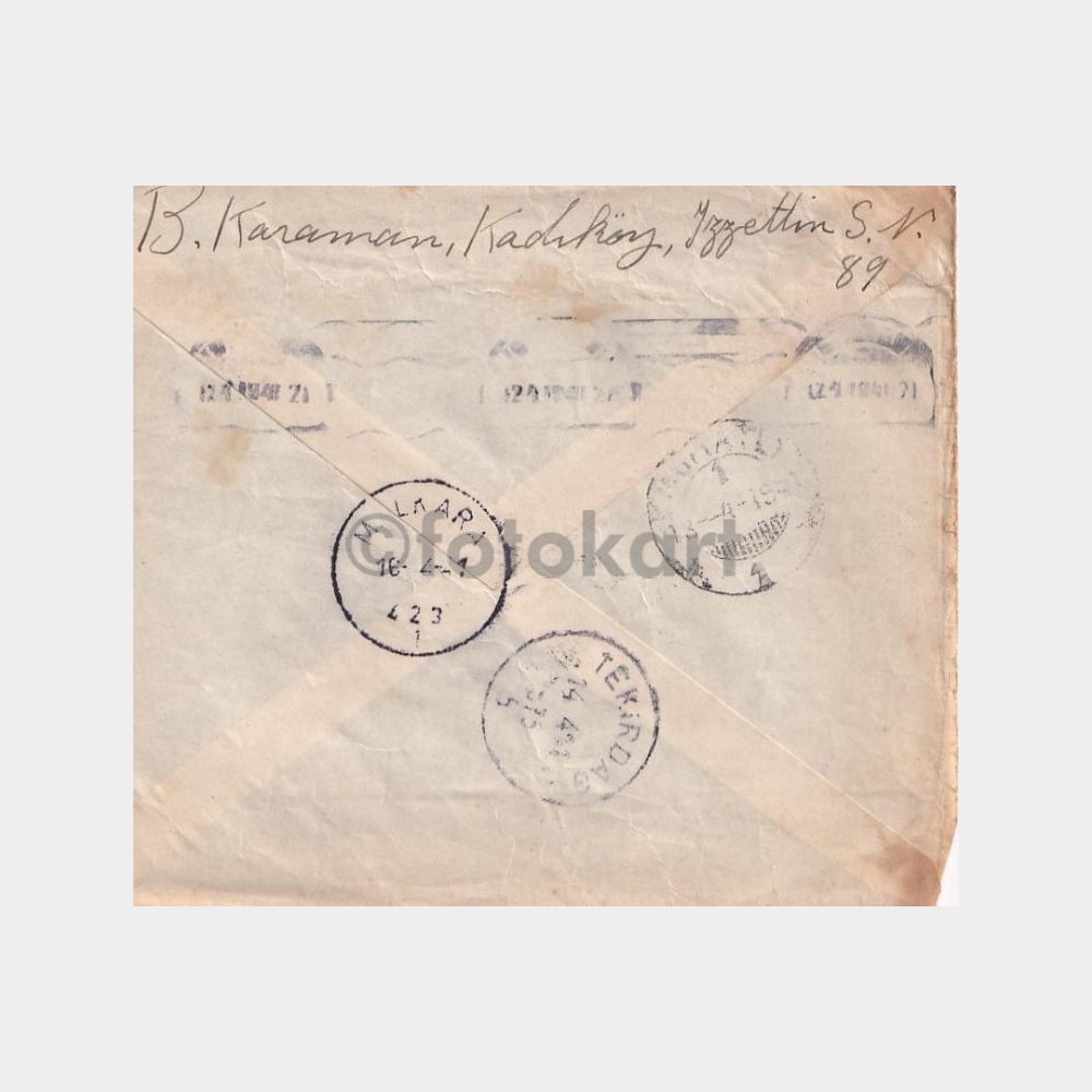 Postadan Geçmiş Zarf, 1940 Kadıköy Malkara Tekirdağ