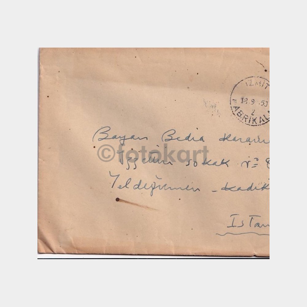 Postadan Geçmiş Zarf, 1950 İzmit Fabrikalar