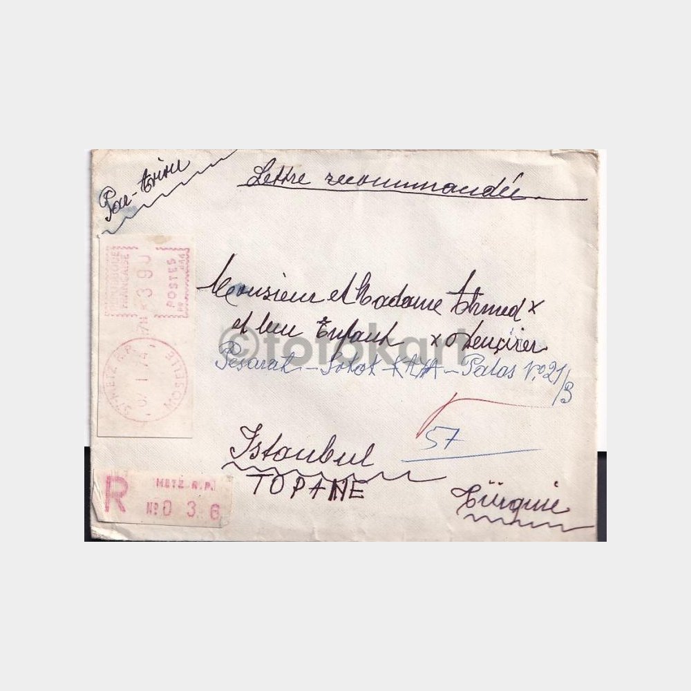 Postadan Geçmiş Zarf, 1974 Fransa Metz Otomat Pullu
