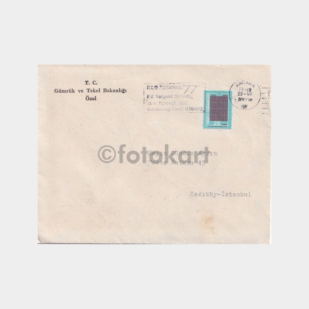 “Postadan Geçmiş Zarf, 1977 RCD İstanbul 77 Pul Sergisini Görünüz, Flam Damgalı” için yorum yapan ilk kişi siz olun