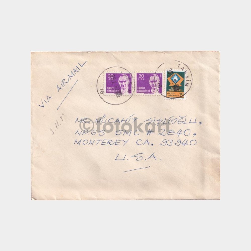 Pullu damgalı, postadan geçmiş, koleksiyon amaçlı zarf.
