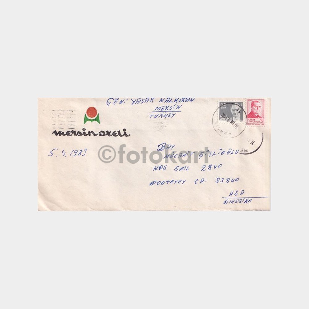 Postadan Geçmiş Zarf, 1983 Mersin-Mersin Oteli Antetli