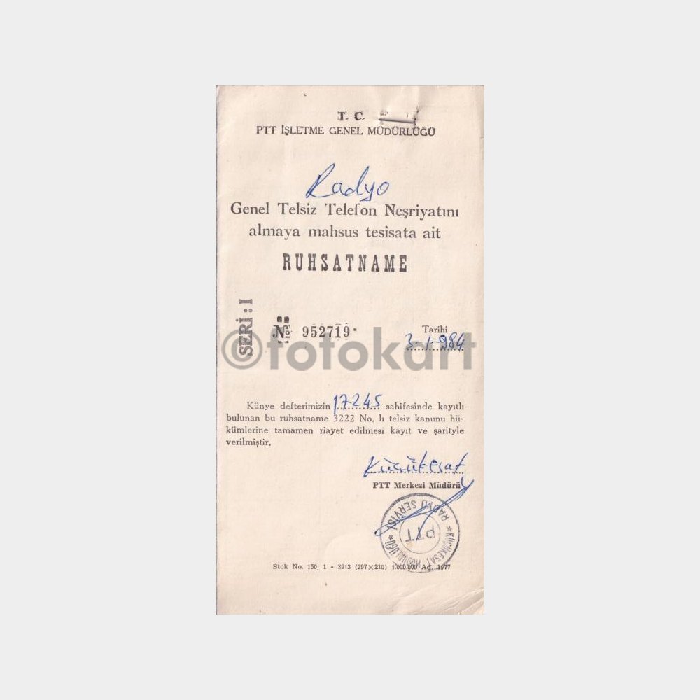 “PTT Radyo Ruhsatnamesi No. 01” için yorum yapan ilk kişi siz olun