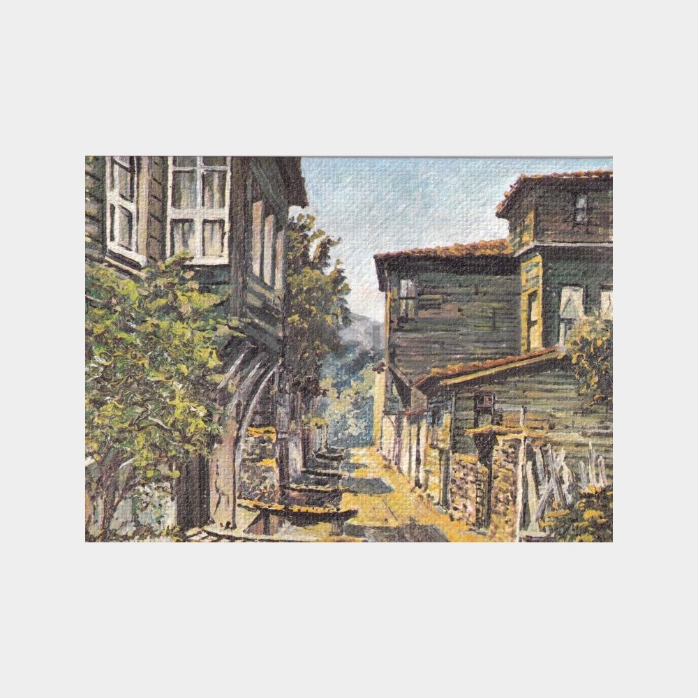 9 x 14 cm, içi Garanti Bankası baskılı. Rumeli Kavağında Dere Boyu isimli tablosundan.