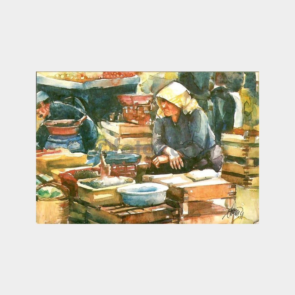 Ressam Atanur Doğan Pazarcı Kadın Tablosu Tebrik Kartı