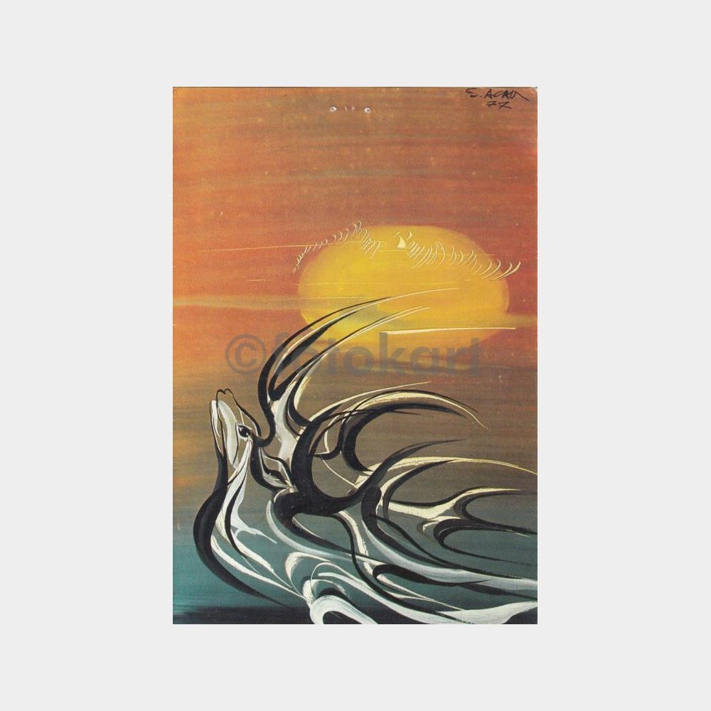 Ressam Salih Acar Kuş Figürlü Tebrik Kartı
