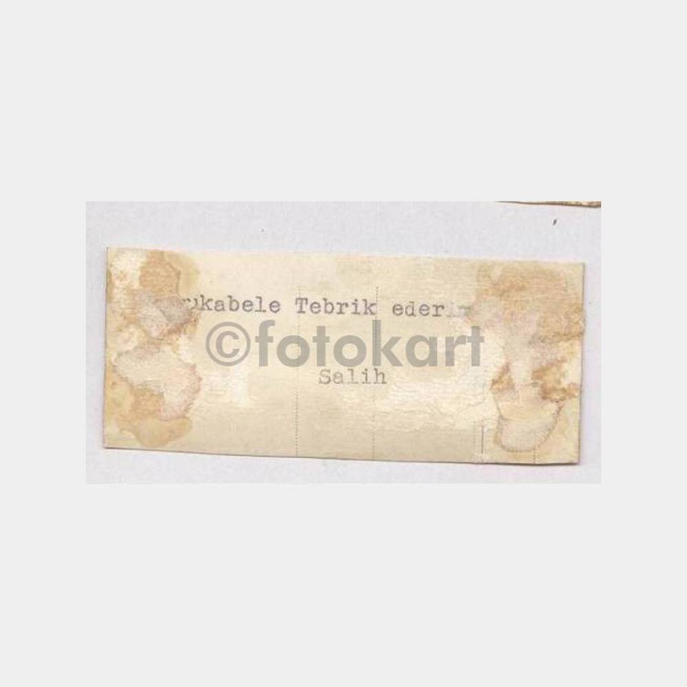 8,5 x 4 cm tebrik fotokart, arkası albümden alınma