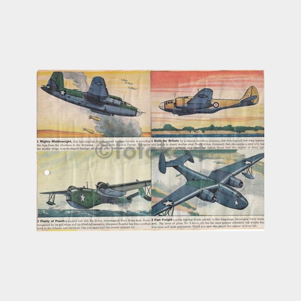18 x 25 cm ebadında, koleksiyon amaçlı. Karton baskı yanında bir karton üzeri yapışmış uçak resimleri.