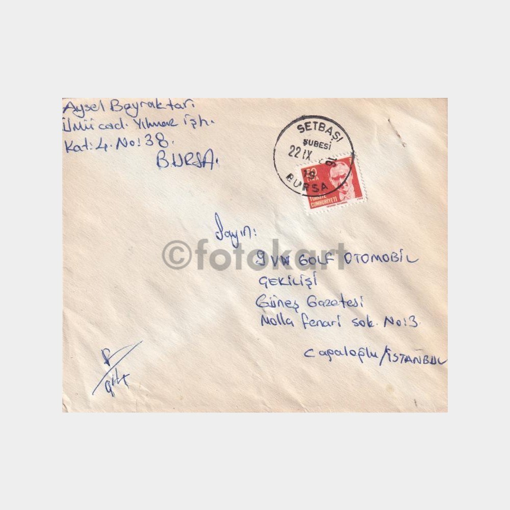 Setbaşı-Bursa, Posta Tarihi-Şehir Damgalı Zarf