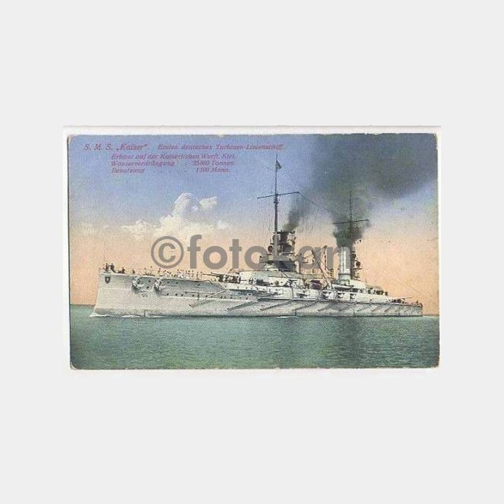 Alman savaş gemisi Kaiser, eski nadir kartpostal, 1912-1919 yılları arasında 1. Dünya savaşına katılan önemli gemi