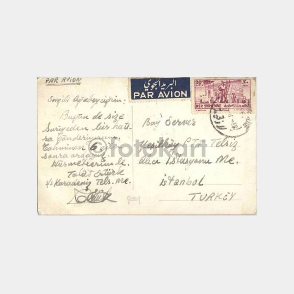 Karadeniz gemisinde telsiz memuru olan Talat Ertürk’ün Yeşilköy ptt telsiz alıcı memuru bay Server’e gönderdiği kart