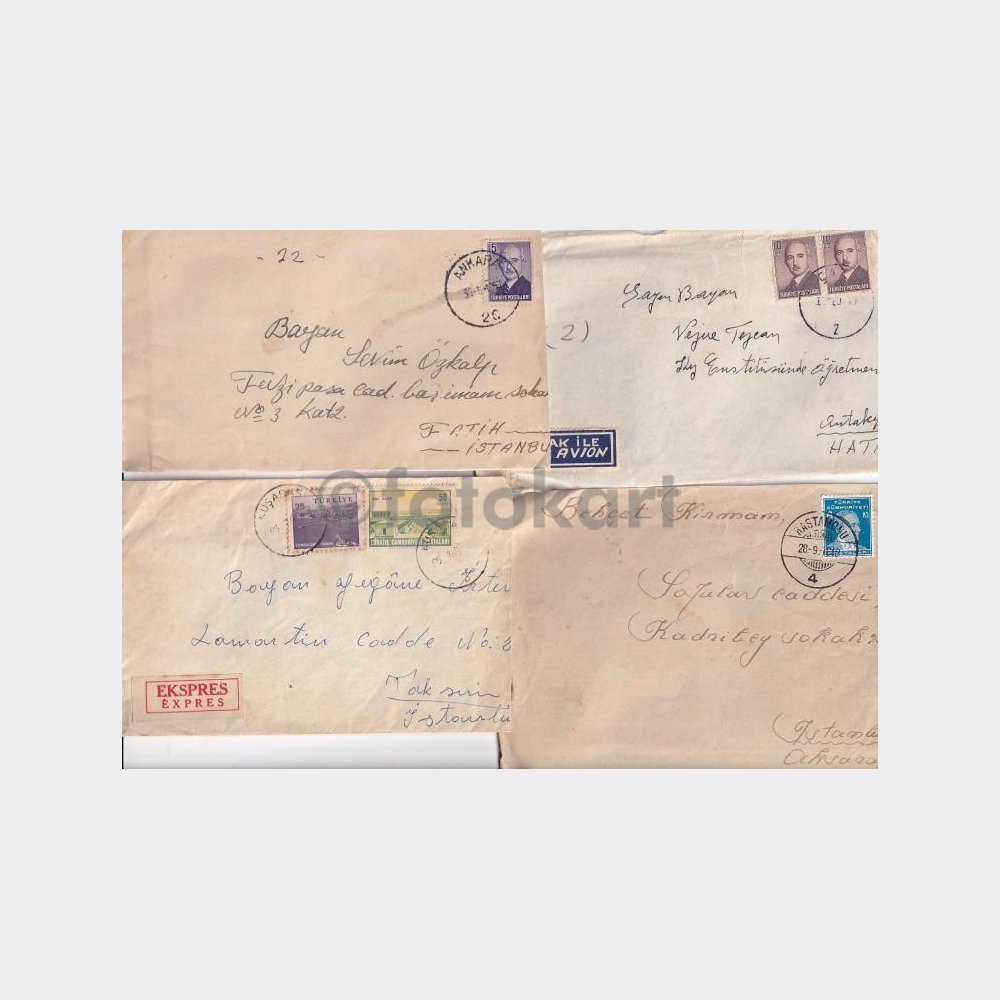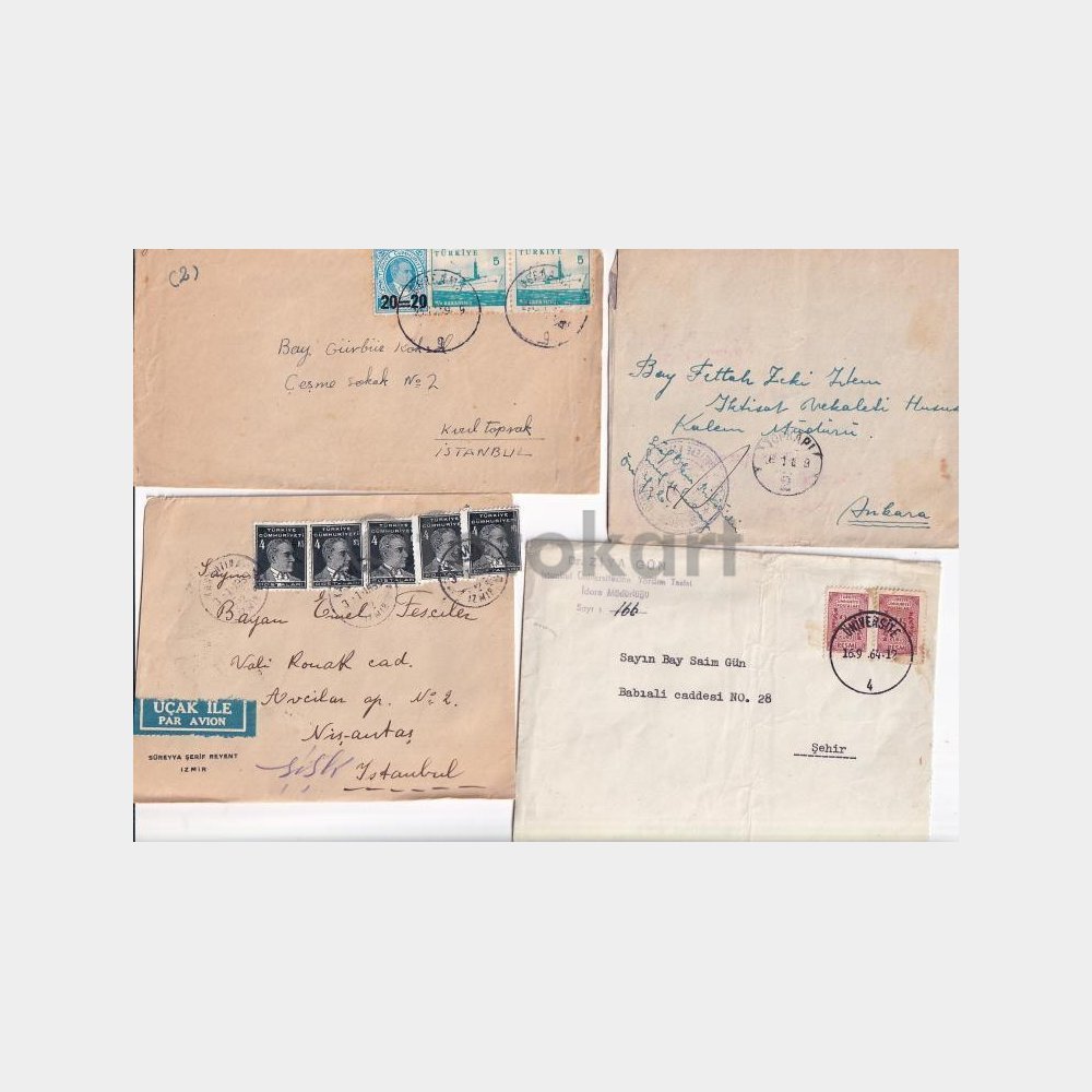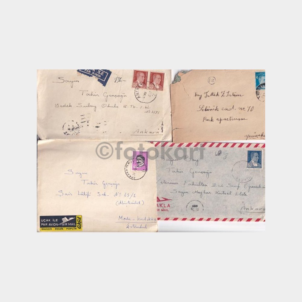 Çoğu eski tarihli damgalı pullu zarflar.