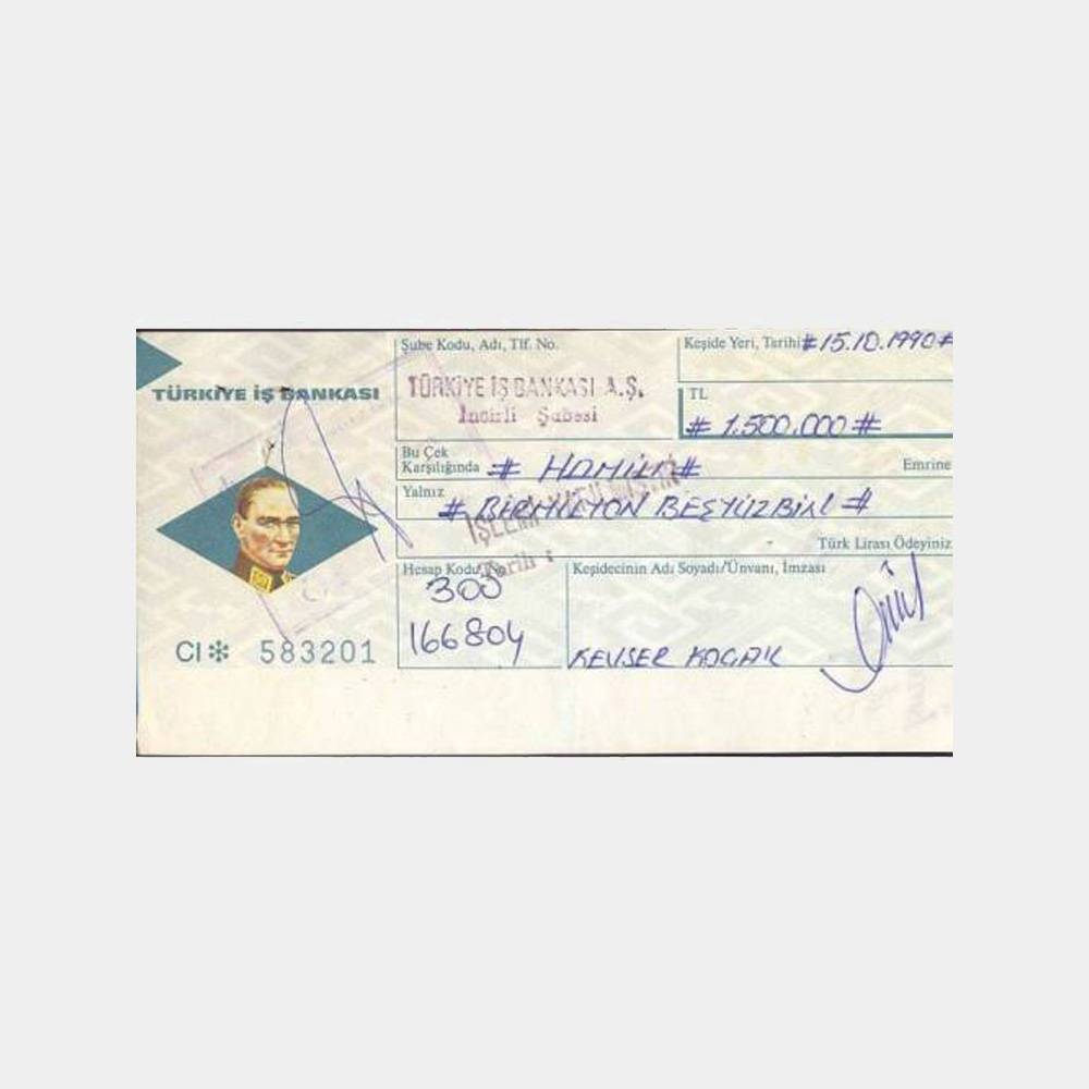 T. İş Bankası çek yaprağı , Atatürk resimli