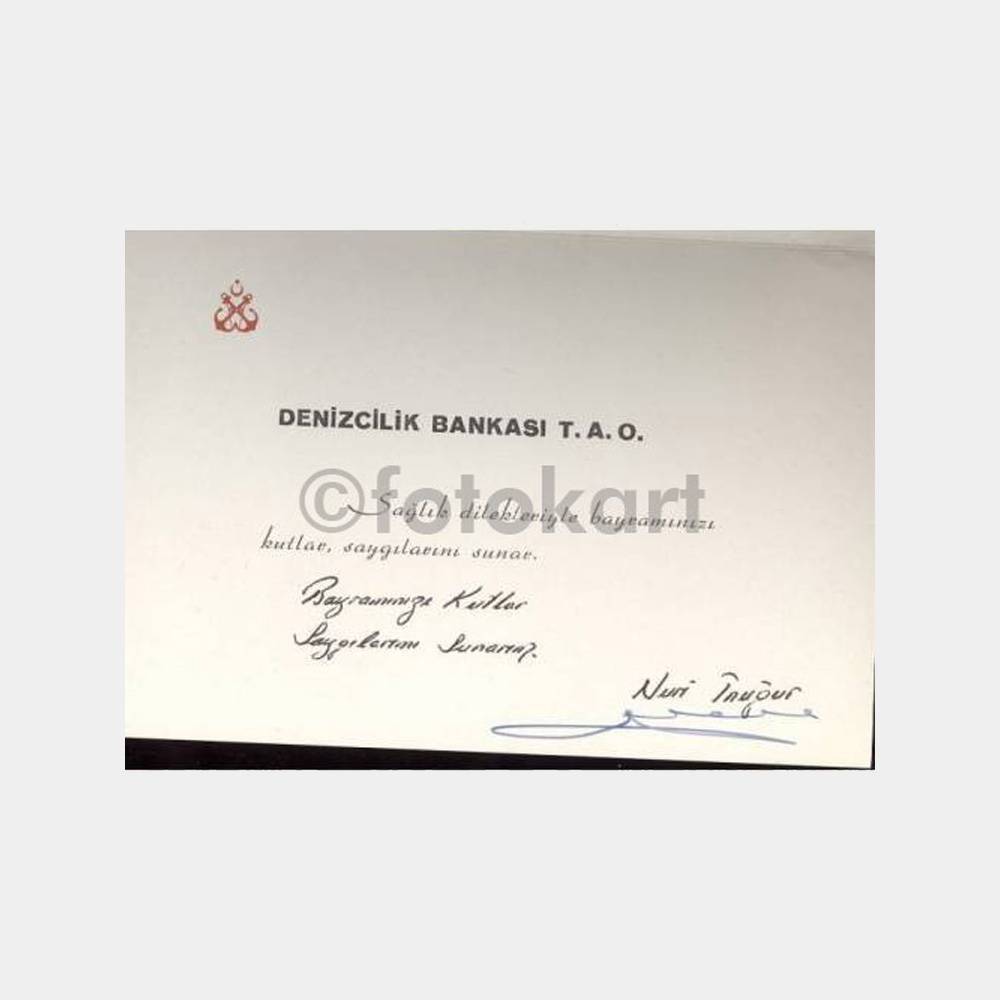 İçi Nuri İnuğur imzalı tebrik kartı