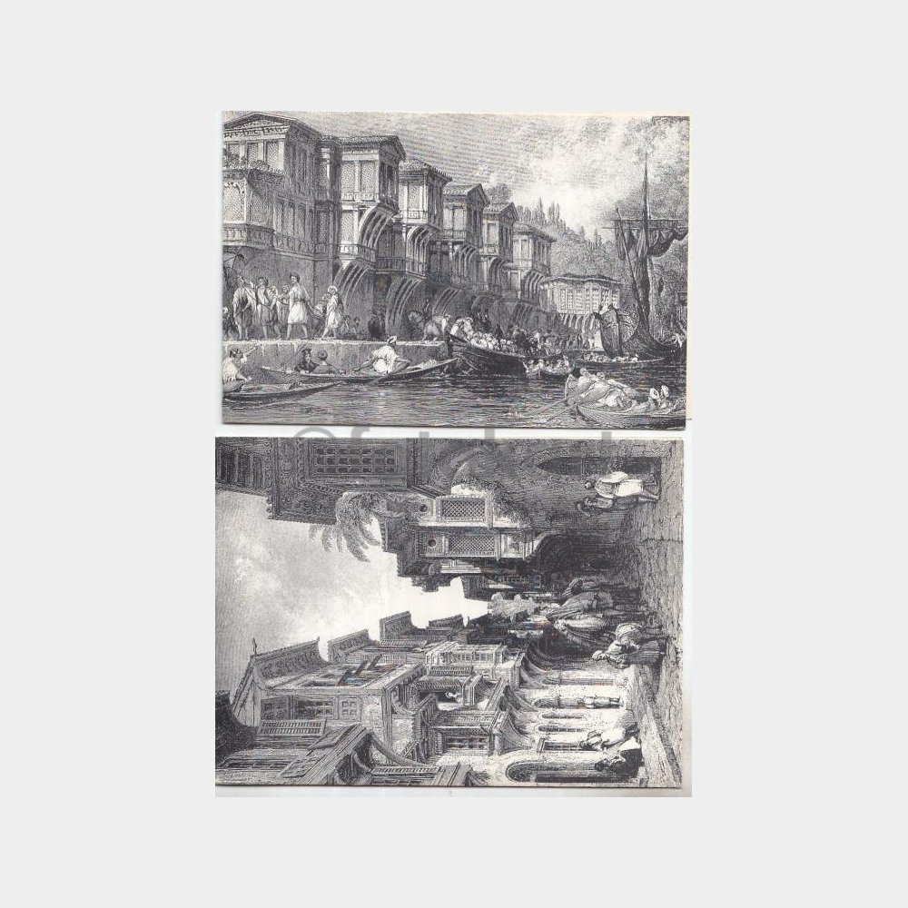 Tarihi Evler Konulu Gravür Resimli 2 Adet Tebrik Kartı