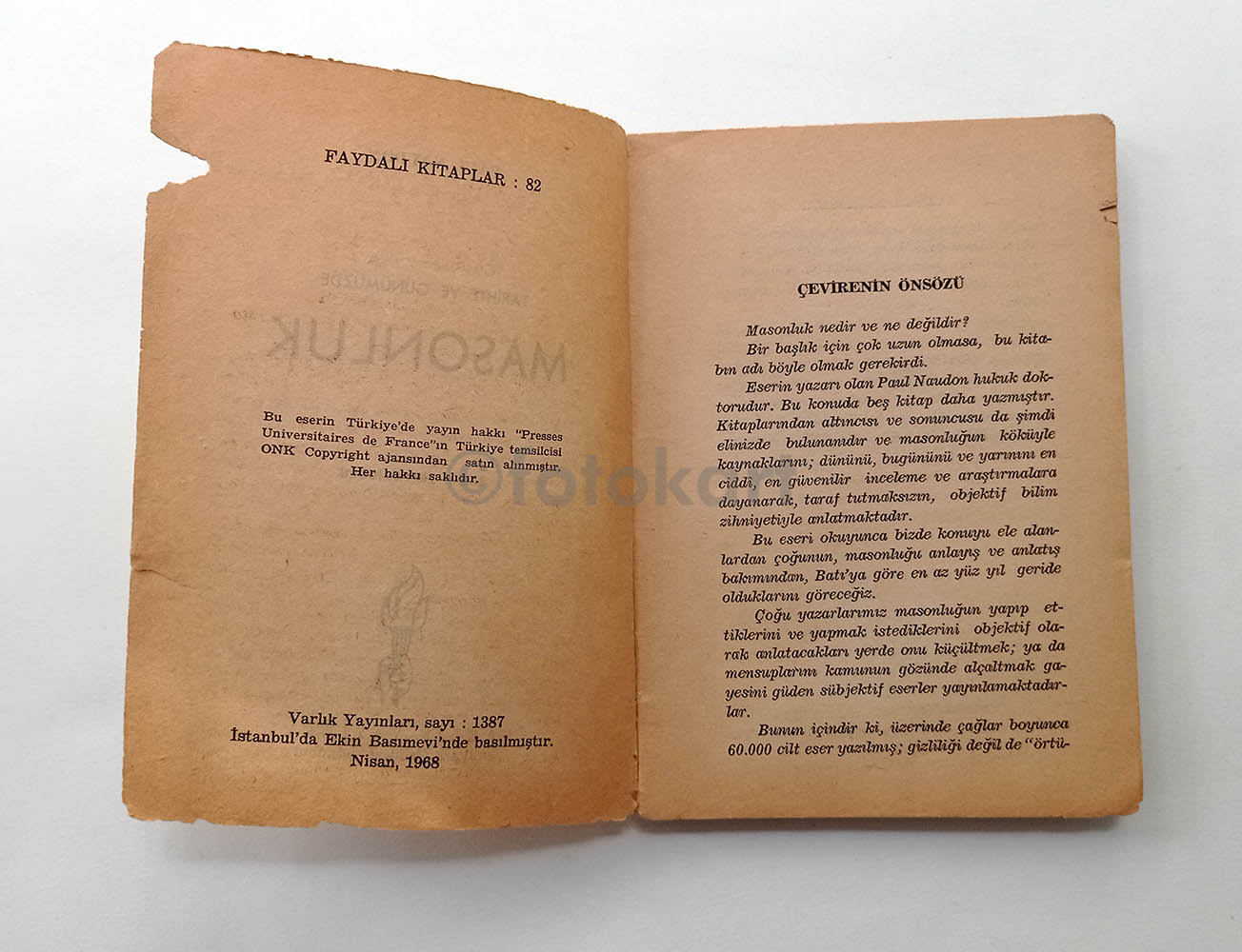 Ön-arka kapak yok, cilt sağlam. Kitap içinde kurşun kalem ile notlar alınmış.
