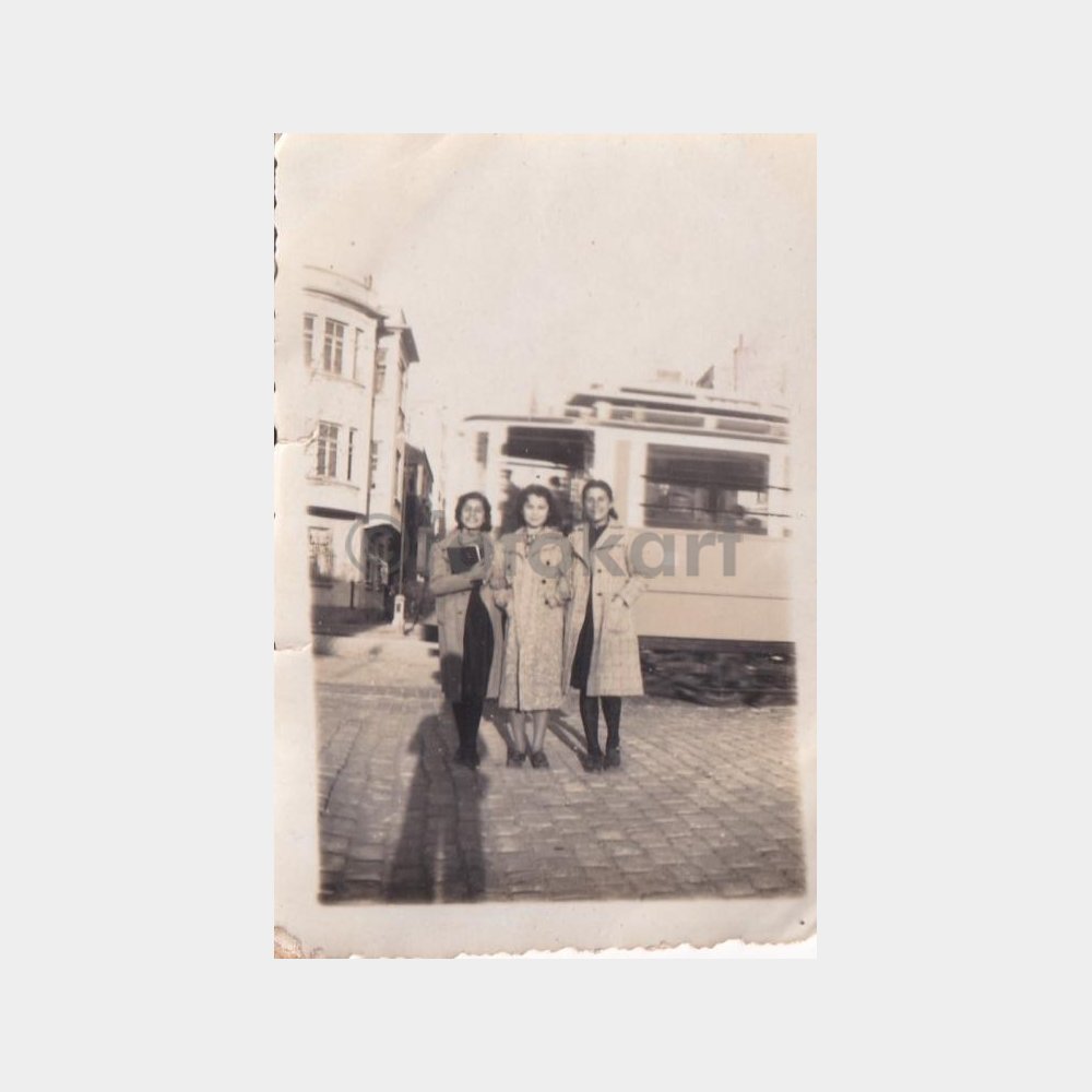 Tatavla Semti Tramvay Önünde Kızlar Fotoğraf