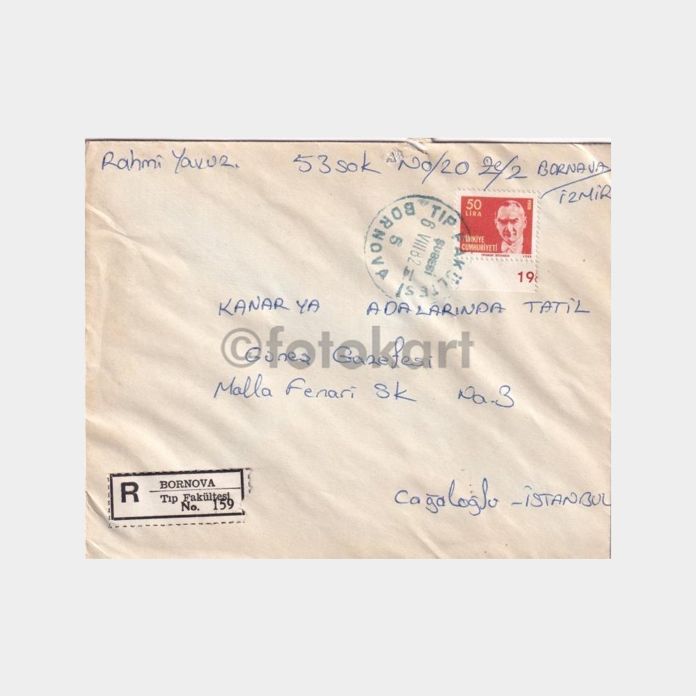 Tıp Fak-Bornova, Posta Tarihi-Şehir Damgalı Zarf