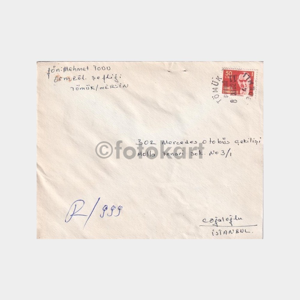 Tömük-Mersin, Posta Tarihi-Şehir Damgalı Zarf