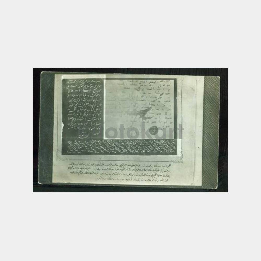 14 x 9 cm ebadında arkası yazılı fotoğraf, Topkapı Sarayı mukaddes emanetler dairesinde saklanan peygamberimizin mektubu fotoğrafı