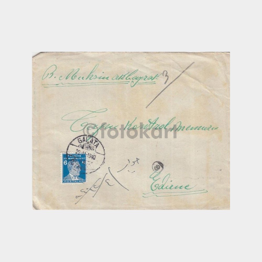 10 x 15 cm ebadında, koleksiyon amaçlı eski posta zarfı.