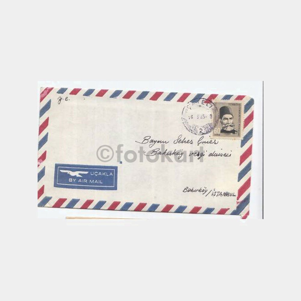 10 x 15 cm ebadında, koleksiyon amaçlı eski posta zarfı.