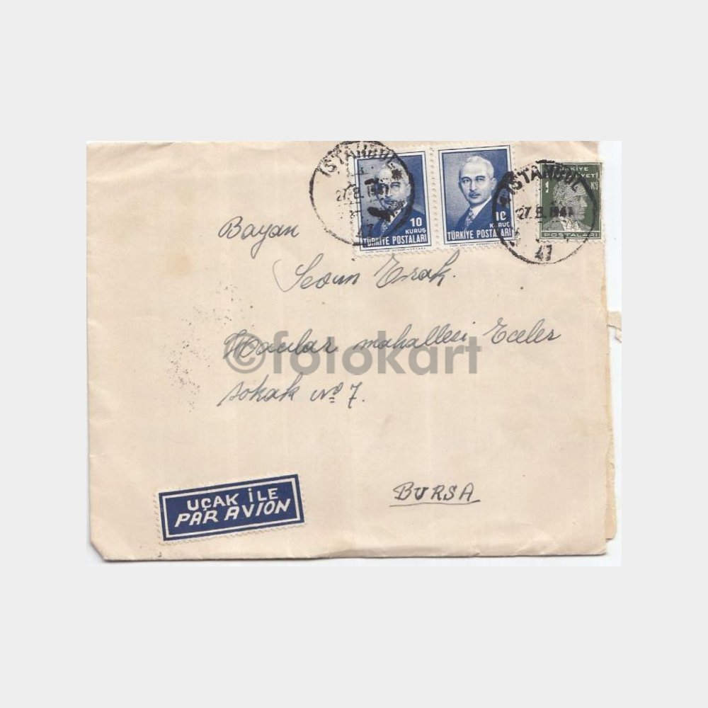 10 x 15 cm ebadında, koleksiyon amaçlı eski posta zarfı.
