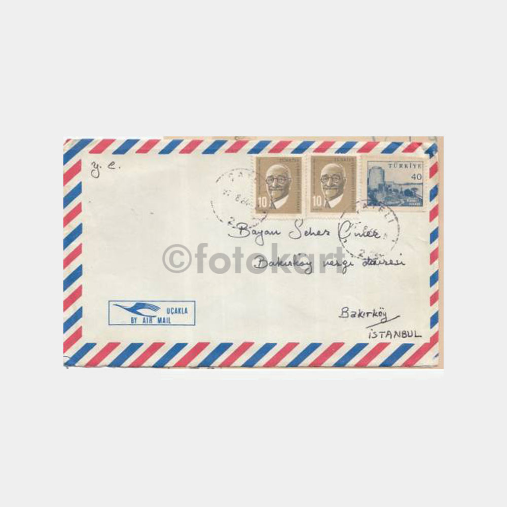 10 x 15 cm ebadında, koleksiyon amaçlı eski posta zarfı.
