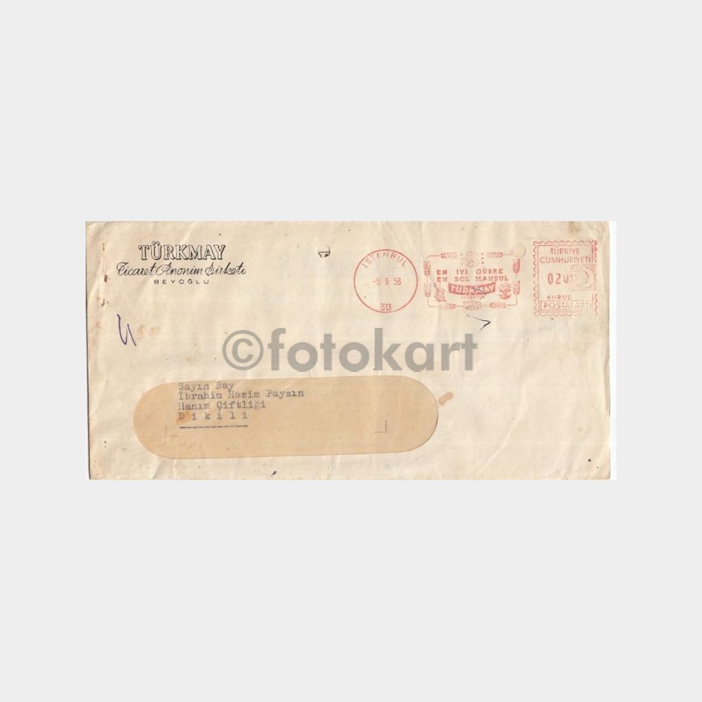 10 x 15 cm ebadında, koleksiyon amaçlı eski posta zarfı.