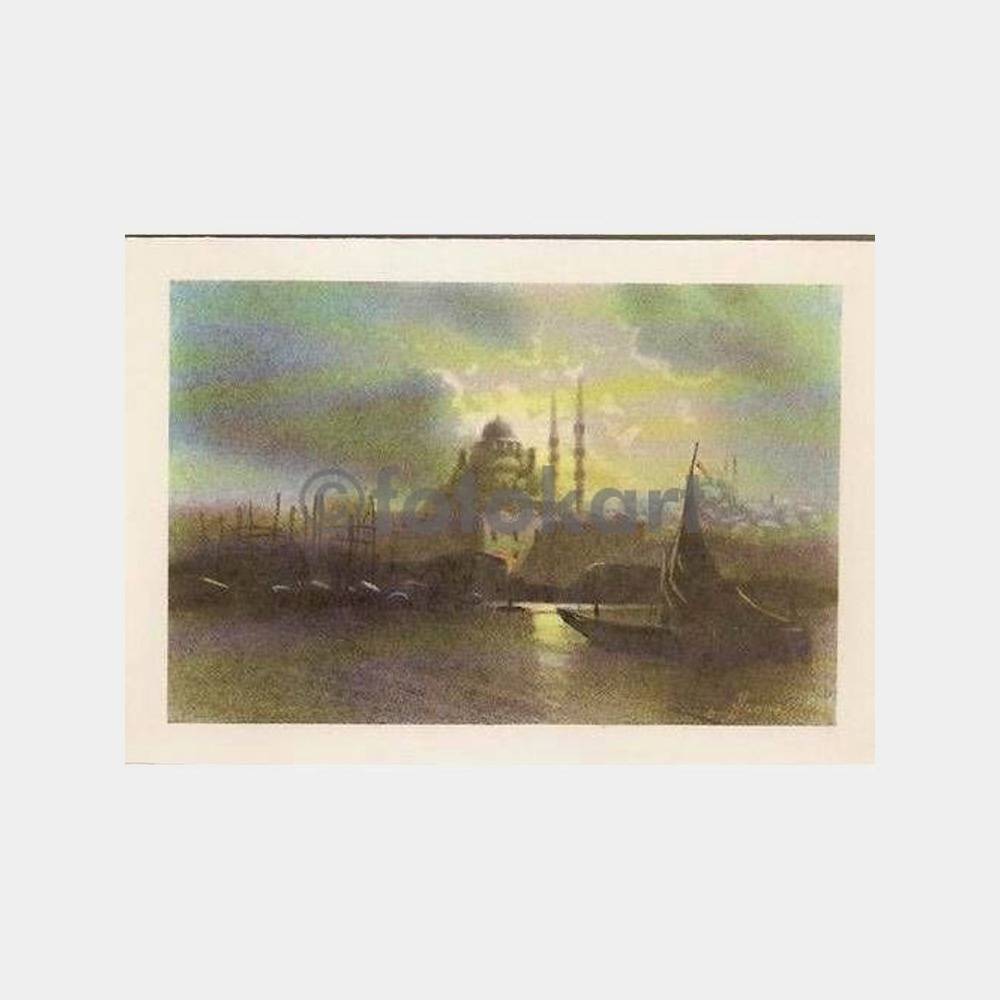 Türk ressamları tablo tebrik kartları, 25-ressam yok, eski İstanbul manzaraları, içi netaş baskılı, kayık görüntülü