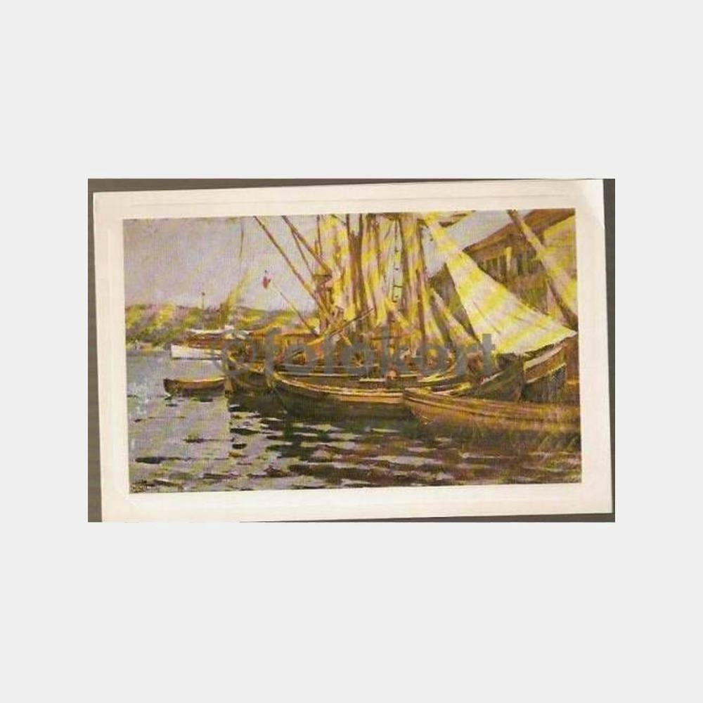 Yapı ve kredi bankası özel kolleksiyonundan 1906 ressam Halil bey kıyıda yelkenli kayıklar, 1987 yılına ait