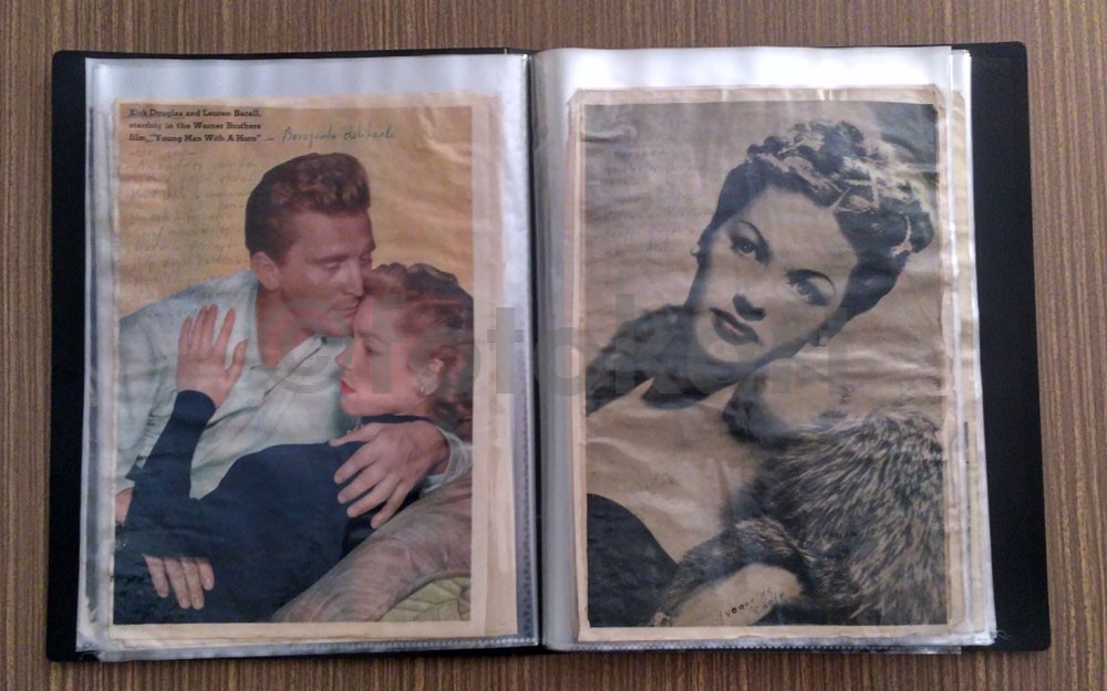 Gazete-dergi küpurlarından kesilerek özenle hazırlanmış, birçok ünlü yabancı film aktör ve aktrisini bulmak mümkün.