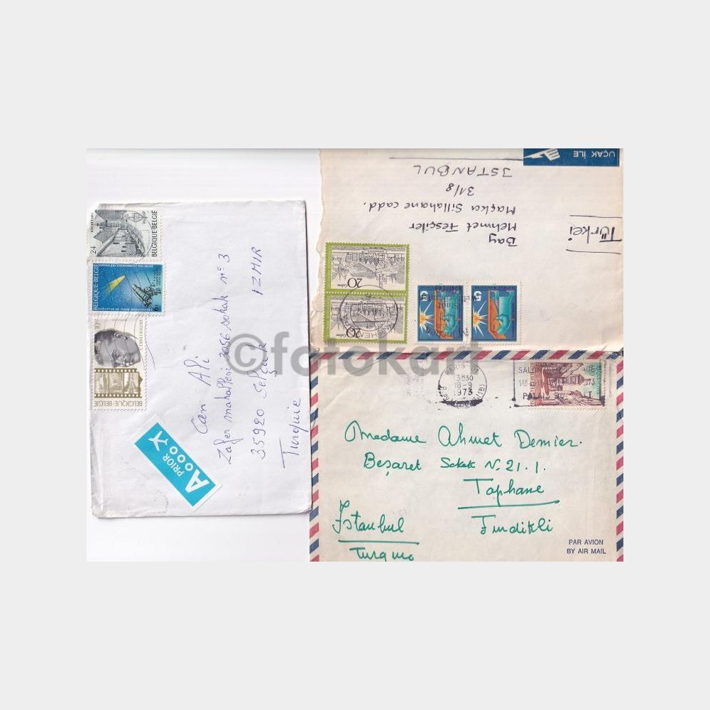 Çoğu eski tarihli damgalı pullu zarflar.