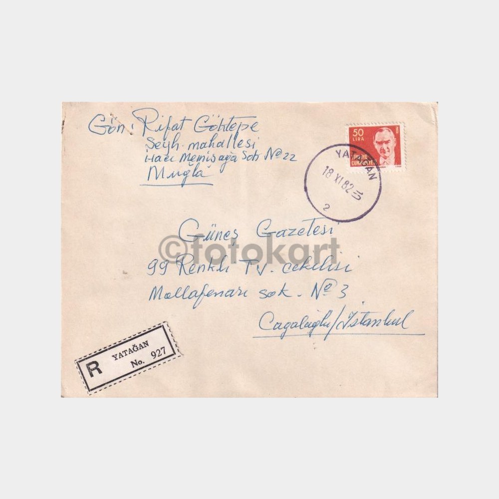 Yatağan, Posta Tarihi-Şehir Damgalı Zarf