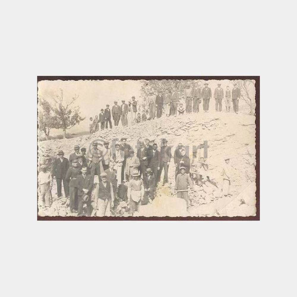 Yozgat konulu topluluk fotoğrafı, arkasında Rıfat amcam yazılı bir yol inşaatı, kondüsyonu orta