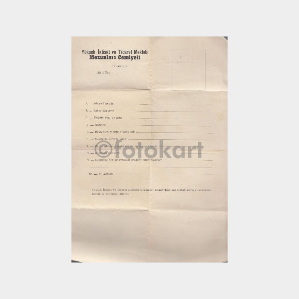 Yüksek İktisat Ticaret Mektebi Mezunlar Cemiyeti Üye Formu
