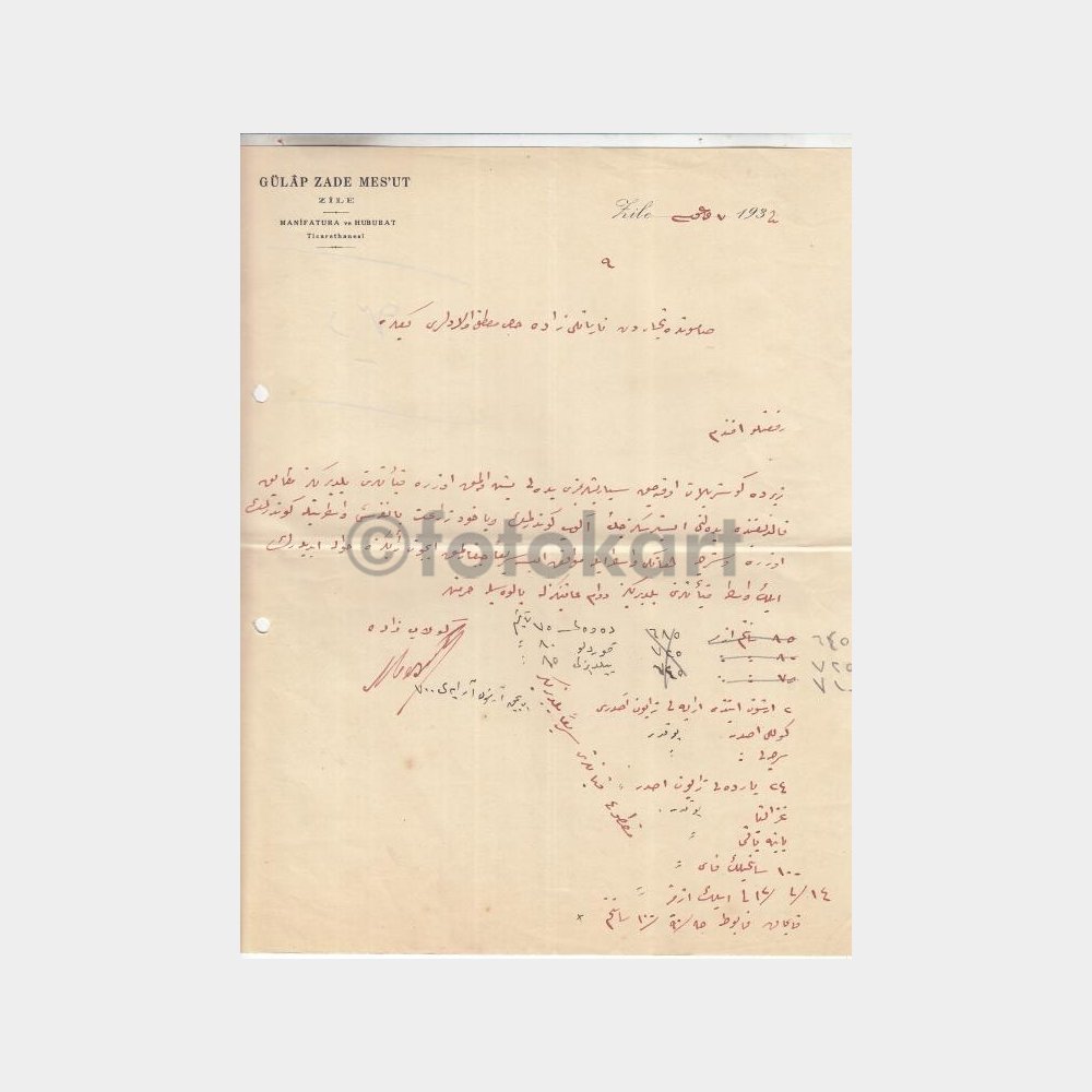 Zile İlçesi Tarihi Belgesi, 1932 Gülap Zade Mesut